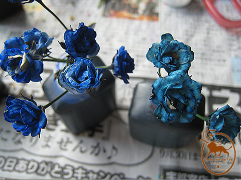 花かんざしは元からカサカサしているので、染めても花びらの色が変わりません^^;